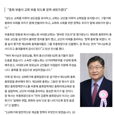 [제109회 총회 선거] 목사부총회장 후보 기호 1번 장봉생 목사 (서울노회/서대문교회)